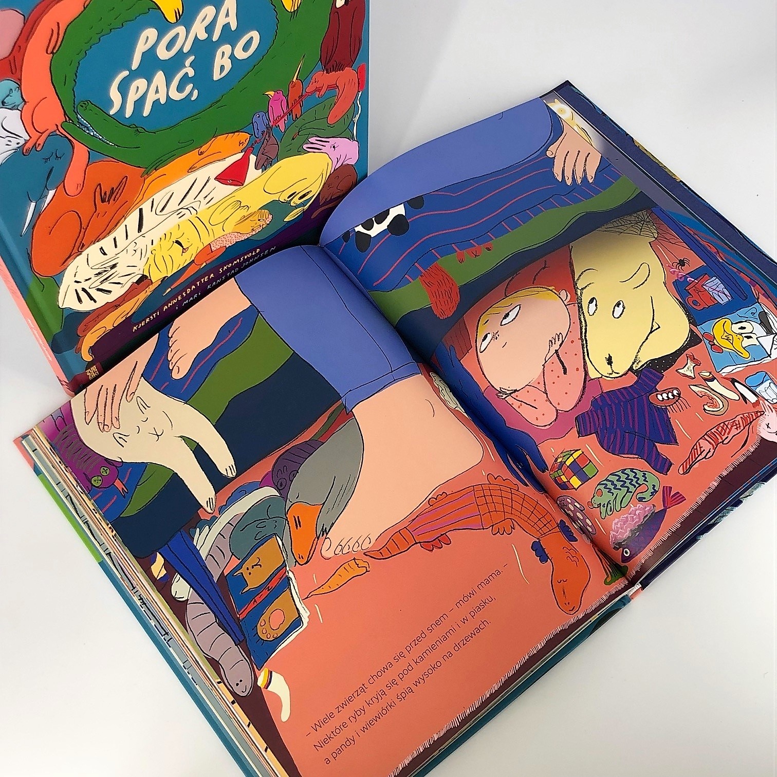 „Pora spać, Bo”, z tekstem Kjersti Annesdatter Skomsvold i ilustracjami Mari Kanstad Johnsen, to książka dla dzieci w wieku przedszkolnym. Najmłodsi znajdą w niej wiele ciekawostek o zwyczajach zwierząt: